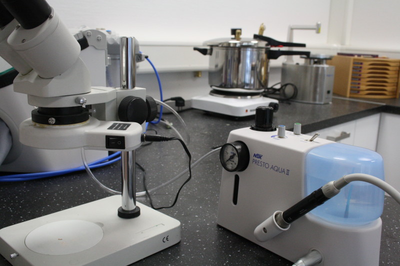 Vom hergestellten Modell nach dem Modellmanagment System (Giroform), über die Artikulation im volljustierbarem Artikulator (u.a. Artex CR) bis hin zur fertiggestellten Arbeit in Zirkon , Edelmetall oder NEM (beides Hereaus), alles gefertigt mit größtmöglicher Präzision.